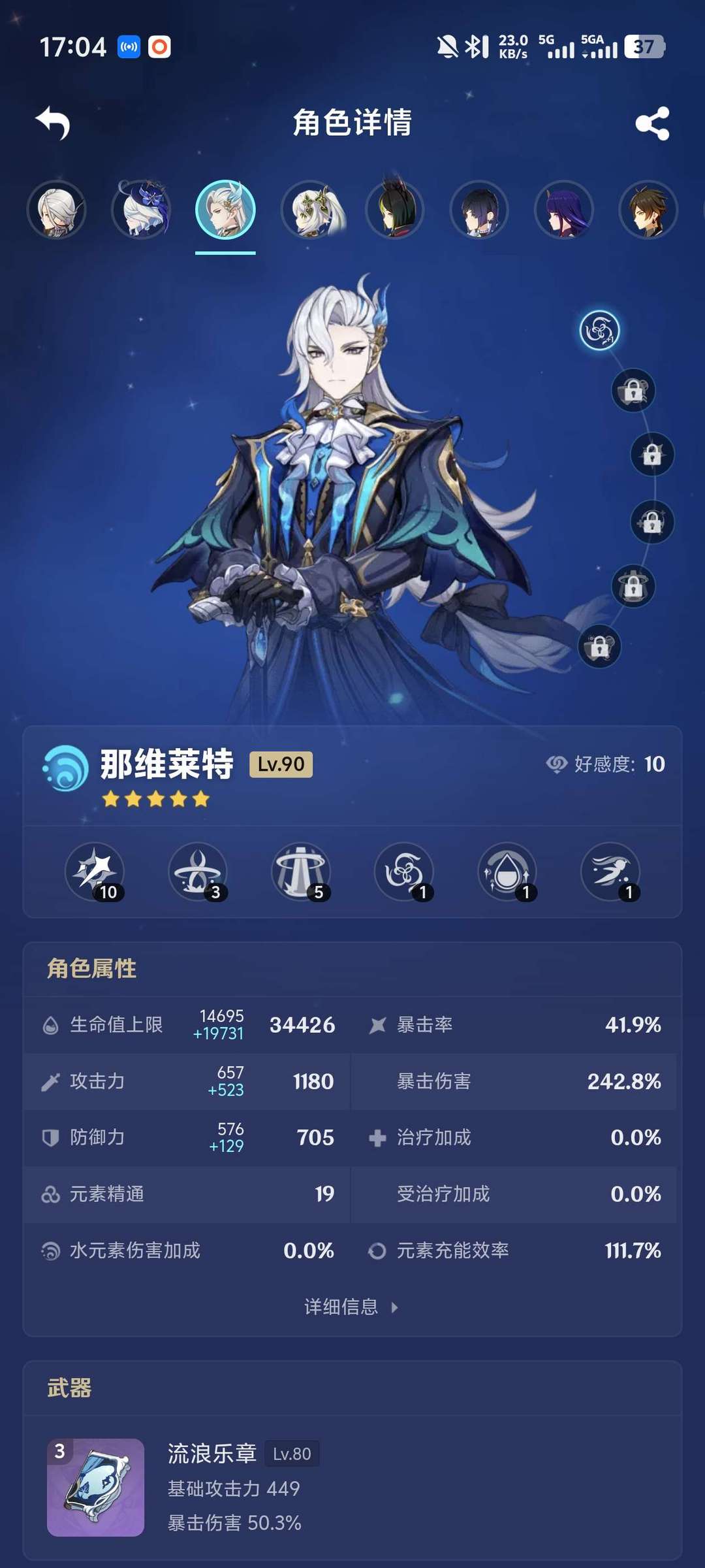 一命那维莱特,一命芙宁娜,一命提纳里+专武,仆人,钟离,万叶,夜兰,雷电将军,希诺宁,心海,神子
