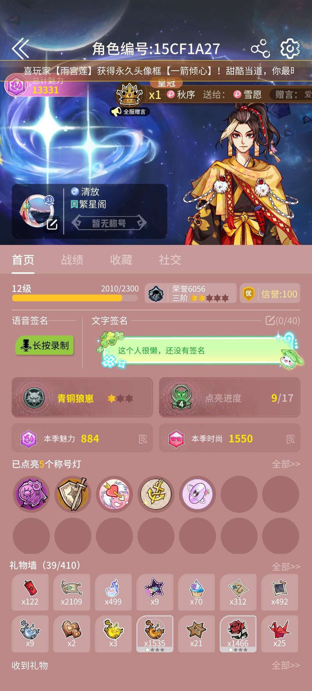信誉80!魔音,动态名片,航道缔造者等称号,4五星男女通用,禁止逃跑