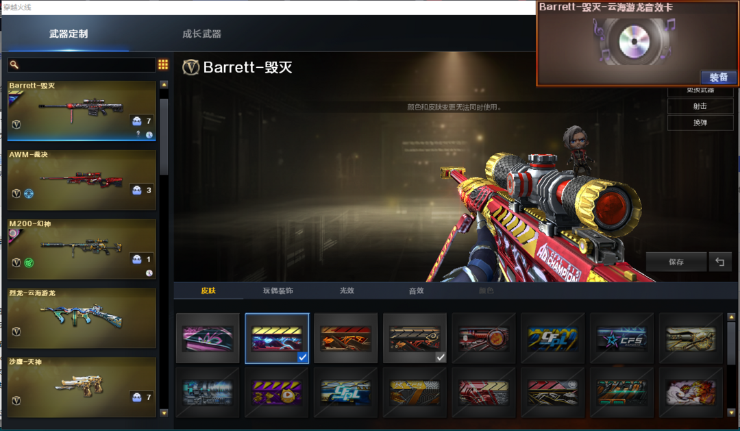 装备描述:位:可以--------------------爆破全装:幻神音效(宠儿皮肤)、EP世冠柯尔特、USP雷暴、COP堕天神、USP神工天巧、COP极地霜雄、QBZ金色蔷薇、白虎、、、幻神音效、裁决音效、毁灭音效、、、2套竞技荣光、1套云龙、、、爆破四防(妮妮、鹰、司雨)