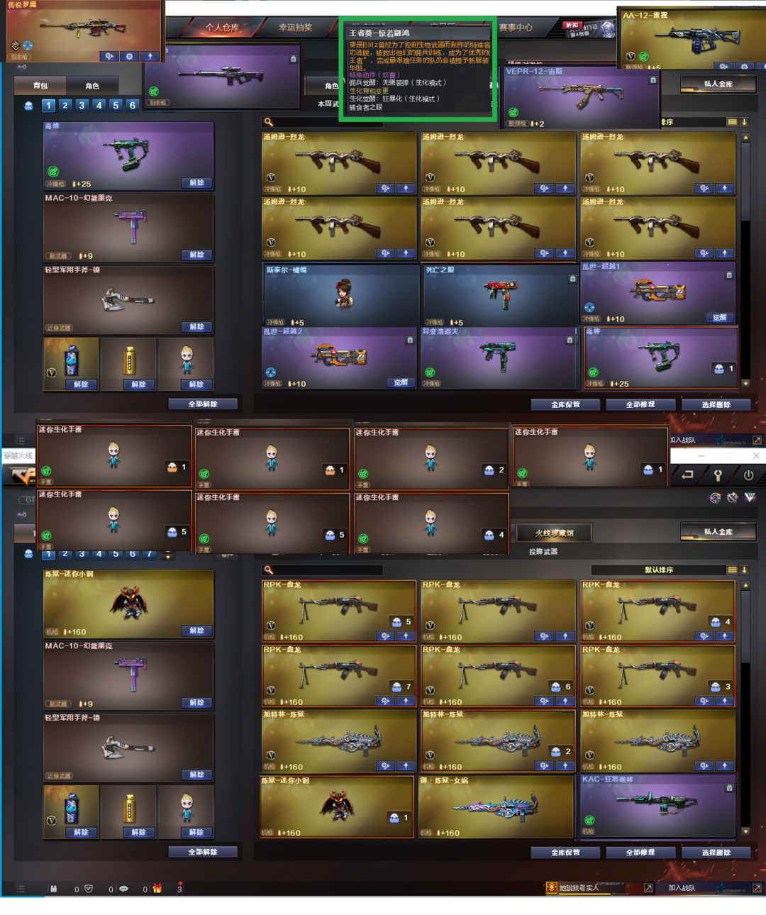 限制: 租号2次及以上 |装备描述:排位:可以-----------------生化四防全装(变更生化背包、可以查看生化僵尸血量):无需换弹、6烈、6盘、炼狱小刚、KAC狂怒咆哮、双面神、宙斯、异变清道夫、毒蜂、斯太尔蝴蝶、死亡之眼、、MAC-涂鸦、手斧镜、个生化减速手雷、全部弹匣、、、、爆破四防:幻神、M200-竞技荣光、98K星神、COP幻灵、COP堕天神、冠军之特、破空枪刃夜魔、、、传说梦魇、QBZ冠军蔷薇、M4神工天巧、、、、、爆破四防(传说艾丽莎、王者影豹)、生化四防(王者惊若翩鸿 )