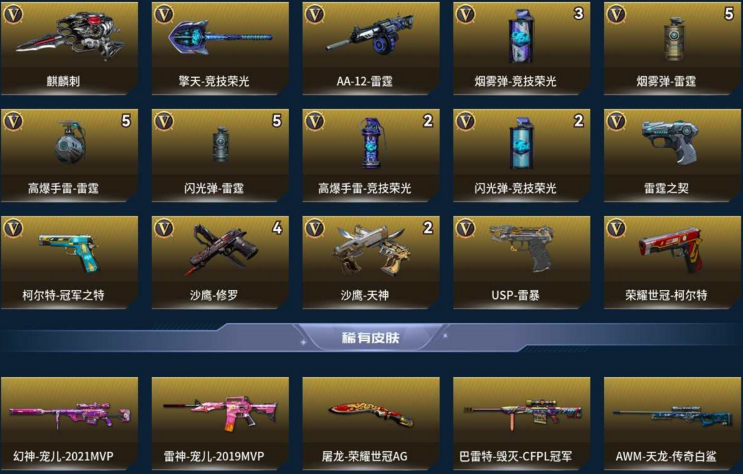 满配手枪⚡M200-幻神宠儿♥M竞技荣光套⚡冠军之特USP雷暴✅金色蔷薇雷神宠儿✅生化6烈龙盘龙死眼