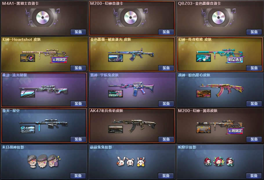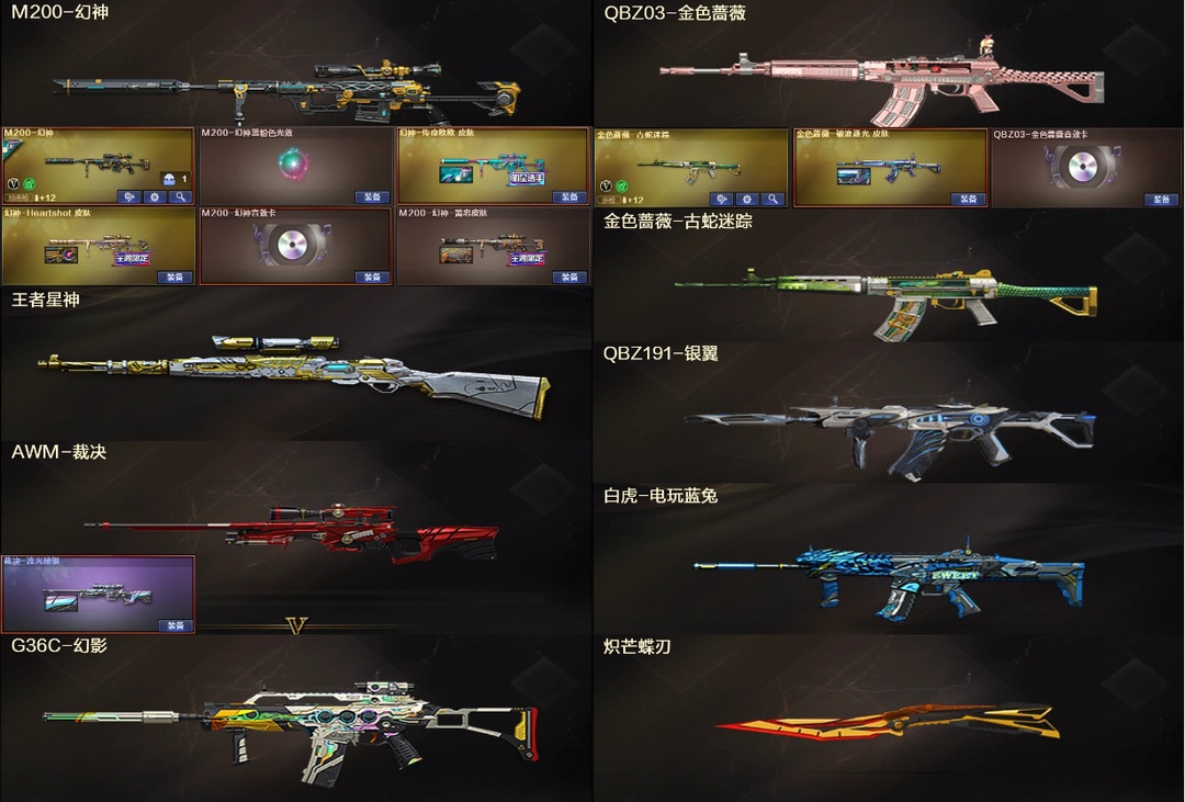 幻神欧欧女团黄忠音效卡+王者星神+裁决秘银☎QBZ破浪音效卡+G36C幻影白虎蓝兔炽芒蝶刃☎4防鹰