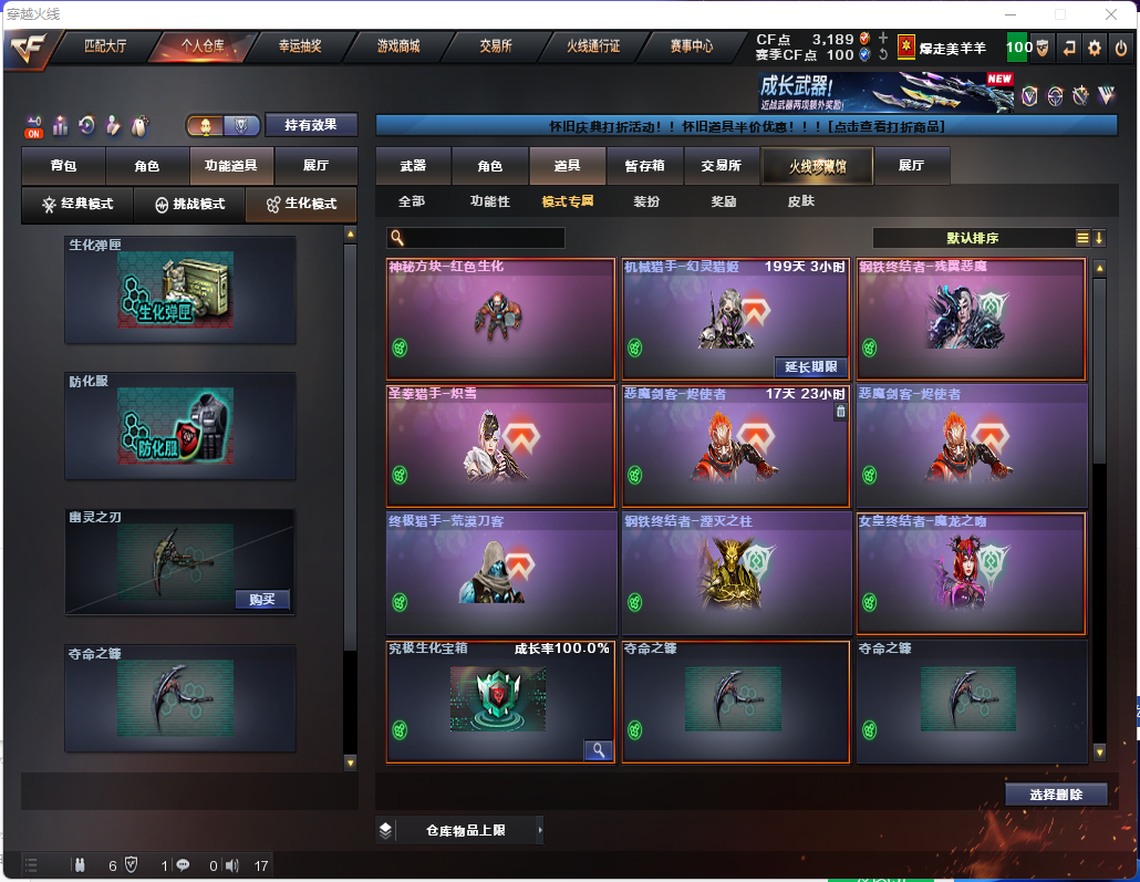 13个生化皮肤✨四防生化背包✨斯泰尔蝴蝶毒蜂✨炼狱带皮幻神可排位✨满榴弹不退包满弹匣全鬼✨无炽芒蝶刃