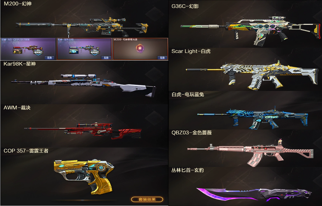 爆破装❤幻神冠军之幻AG光效+星神裁决❤G36C幻影QBZ蔷薇白虎+COP王者雷霆匕首❤4防王者魅影