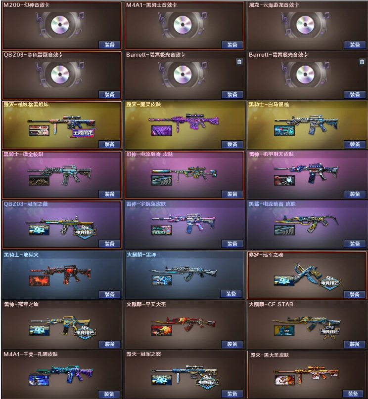 传说辉光❤幻神电流音效卡+王者星神源裁决❤QBZ冠军之薇音效卡+幻影白虎冠军之特❤3防鹰+蝴蝶6烈龙