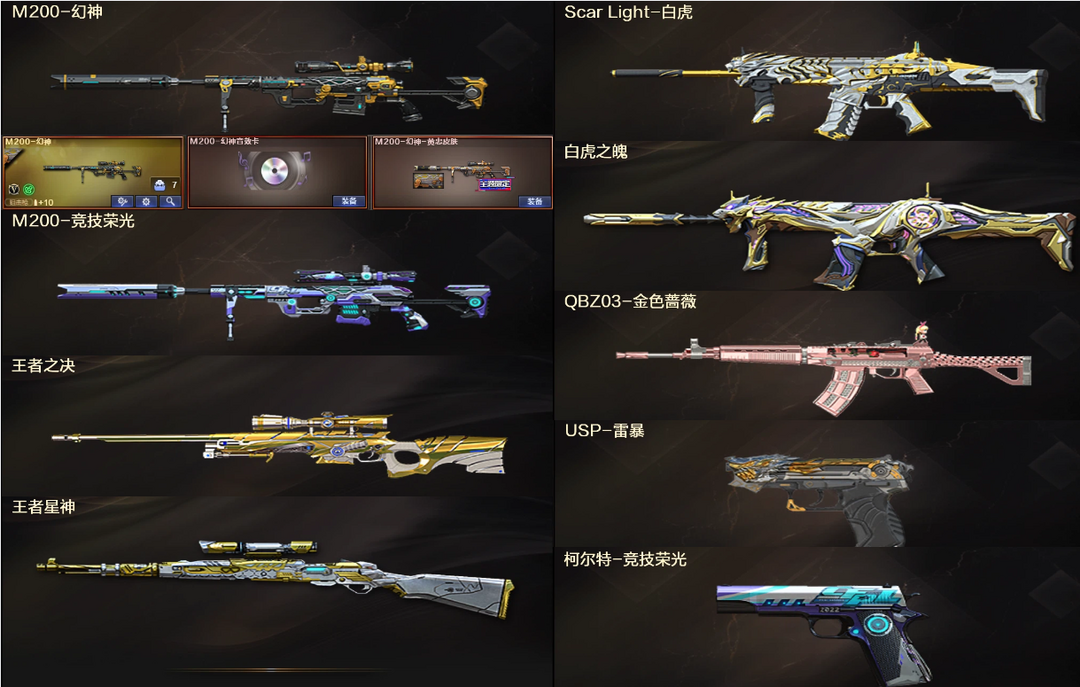 爆破装❤幻神黄忠竞技音效卡+王者裁决星神❤白虎之魄白虎QBZ蔷薇青龙炎心+USP雷暴柯尔特❤4防玫瑰