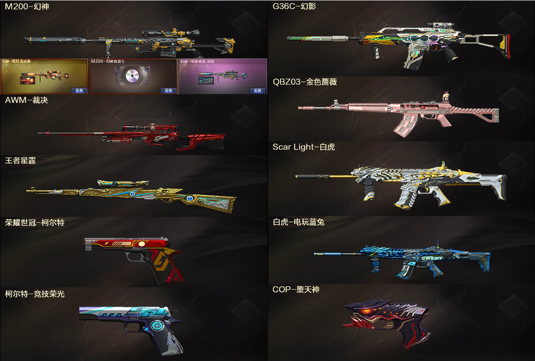 幻神纸灯笼电流骇客音效卡+王者星神裁决✨G36C幻影QBZ蔷薇白虎+2柯尔特COP✨4防玫瑰6烈3盘