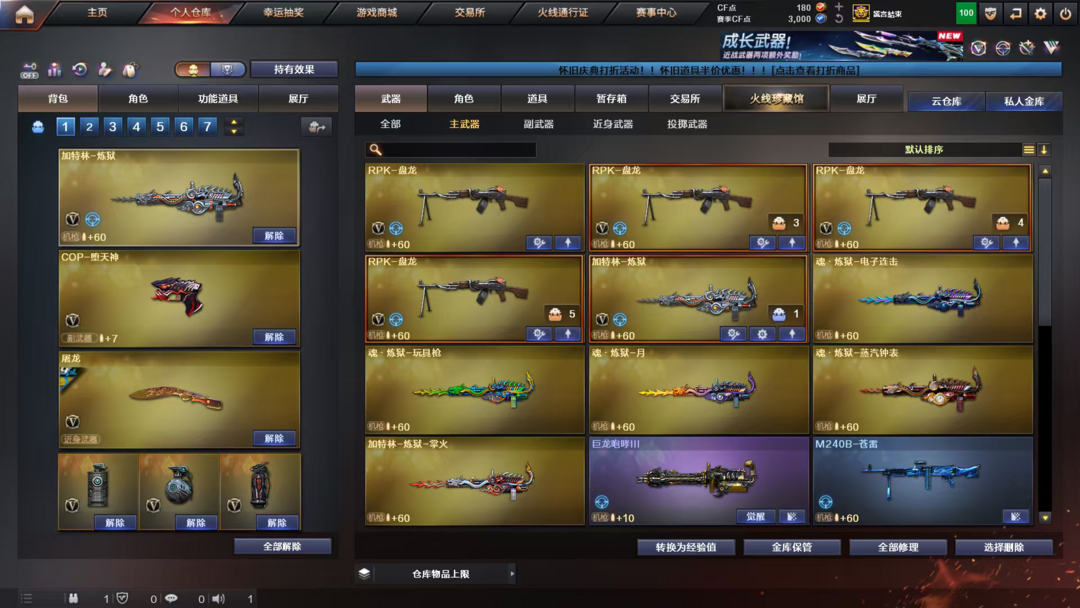 双传说+幻神+白虎 qbz+满雷四防已开+六烈+四盘一炼狱+