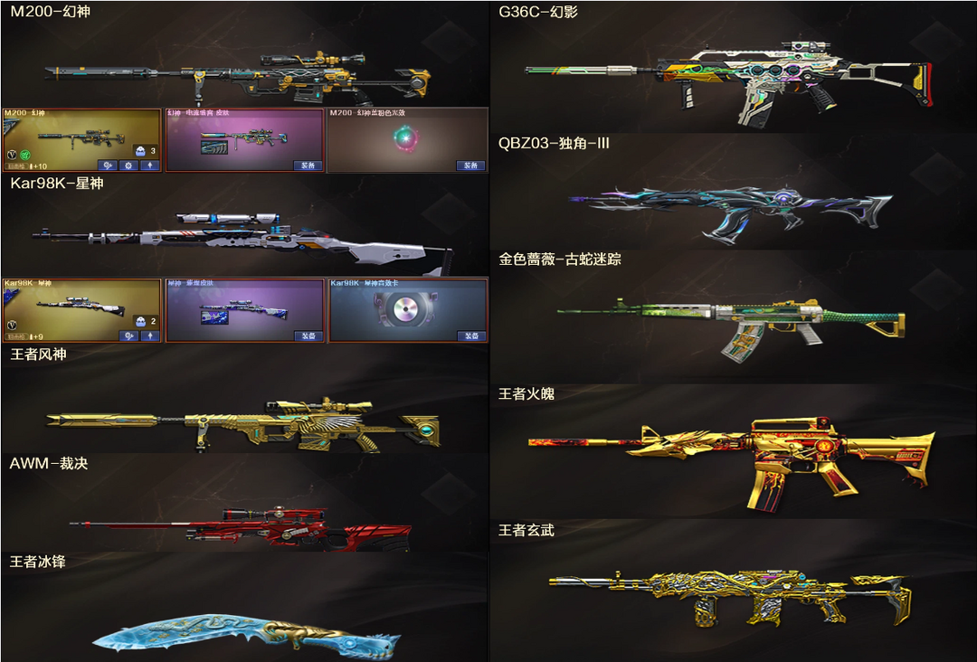 幻神电流+星神璀璨音效卡+裁决风神❤G36C幻影金色蔷薇QBZ独角+王者玄武火魄冰锋❤3防荆棘