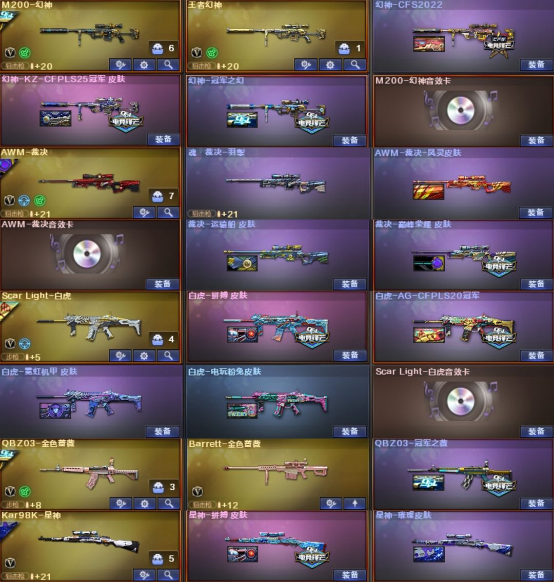 7套幻兽光耀5533幻影⭐幻神卡KZ冠幻CFS⭐裁决音效卡巅峰3皮⭐白虎拼搏4皮⭐QBZ冠薇星神拼搏