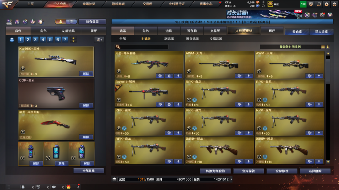 装备描述:可排位可生化有六列EVO动力98K星神,QBZ,M4雷神,生化斯泰尔蝴蝶六盘加特林炼狱死亡之眼