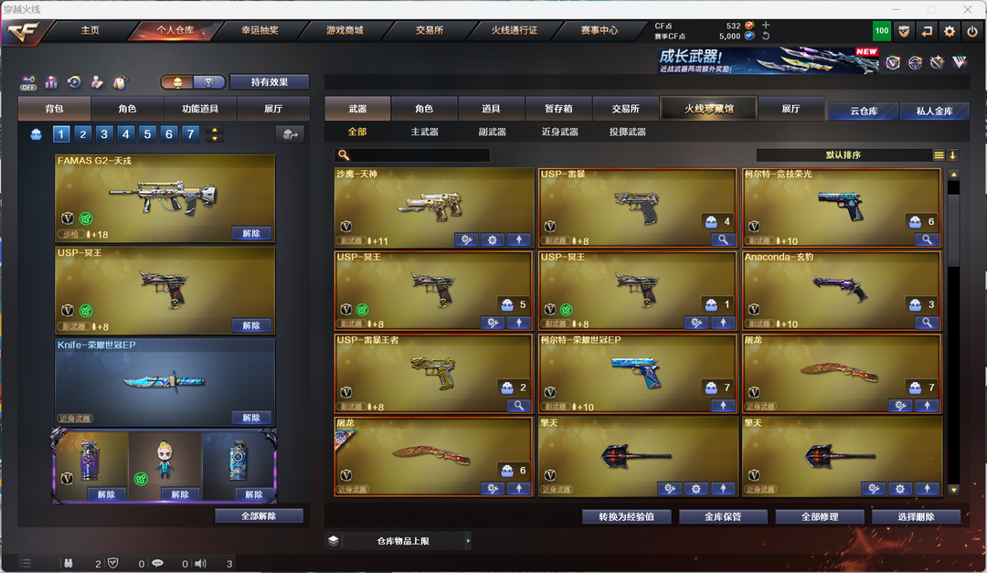 EP幻神大全套妮妮雷暴王者2冥王usp天戎传说圣谕辉光裁决幻神7皮15音效卡拼搏裁决3皮巅峰带卡