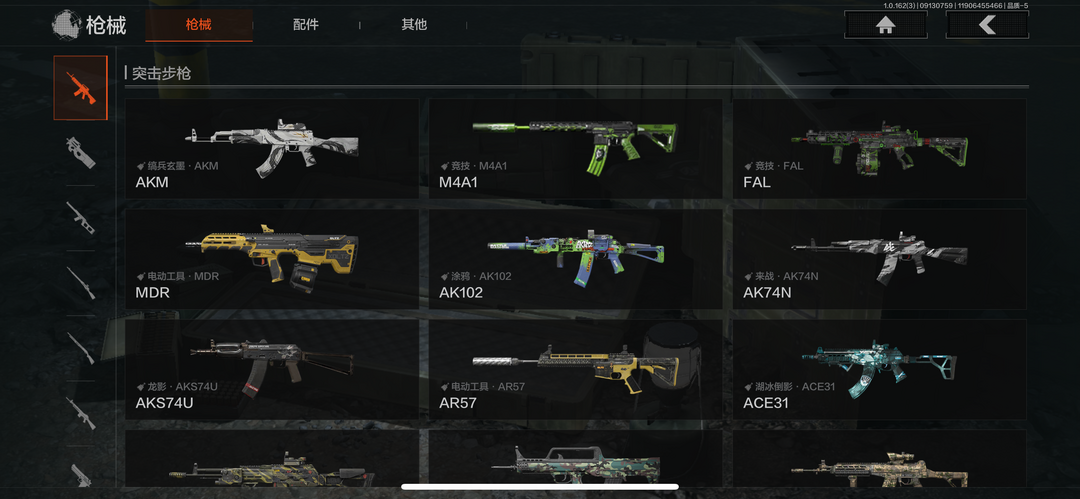 装备描述:30级,历史最高段位:暗区传说【近战武器】:胜利军刀,急袭弯刀,突击匕首,工兵铲,来战开山刀;【角色皮肤】:森林守望特种服,林地作战服,街区守卫;【突击步枪】:缟兵玄墨AKM,德尔塔小队M4A1,巅峰M4A1,竞技M4A1,竞技FAL,真实之眼FAL,林中人FAL,竞技MDR,电动工具MDR,涂鸦AK102,来战AK74N,竞技数码AK74N,白狼连队AK74N,山地伪装AK74N,最后防线AKS74U,龙影AKS74U,电动工具AR57,湖冰倒影ACE31,胜利AEK,森林迷彩T951,林地数码T03,森林迷彩T03;【冲锋枪】:龙威MP5,滑雪季UMP45,自喷网格UMP45,苏梅克UMP45,沙色Vector45,竞技Vector9,都市黄Vector9,山地伪装Vector9,滑雪季Suomi;【射手步枪】:白狼连队VSS,山地伪装MK14,竞技M110,全地形数码M110,缟兵玄墨M110;【栓动步枪】滑雪季莫辛;【霰弹枪】:胜利S12K,无畏USAS12,真实之眼APR310;【卡宾枪】:异彩合金M14;【手枪】:碳黑M9A3,过江龙G18C,涂鸦G18C,水蓝F57,碳黑