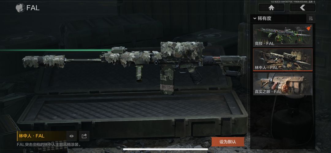 5刀3皮2金枪,胜利军刀,急袭弯刀,突击匕,工兵铲,来战开山刀,竞技FAL,林中人FAL
