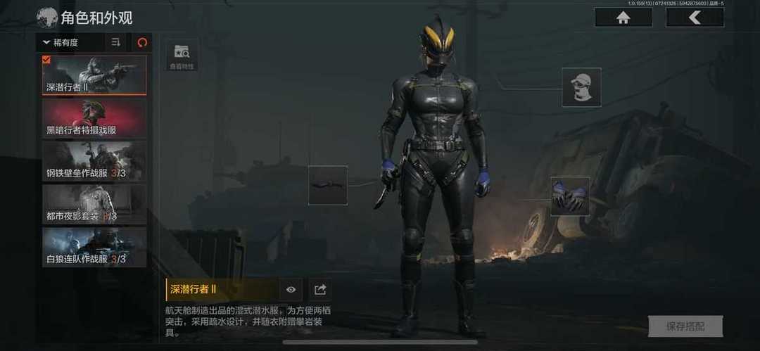 装备描述:宇南1493:6刀3金皮1手套5金枪 深潜者二 黑暗行特摄戏服 钢铁壁垒作战服 急袭弯刀 精英指虎 涂鸦利刃 裁决手杖剑 瀚星斩铁 盘牙利刃