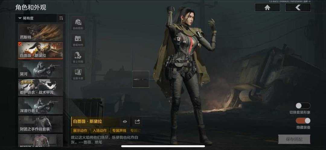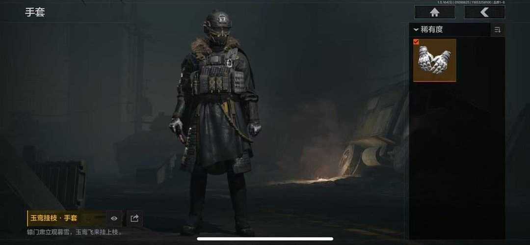 装备描述:1橙衣4金衣7金刀14金枪 芭斯特 白蔷薇 冥河 风雪玉门深潜行者2 近战武器:瑞兔折刀,涂鸦利刃,急袭弯刀,下弦月,三尺万仞战术剑,S-07折刀,工兵铲,来战开山刀,精英指虎;手套:玉鸾挂枝手套