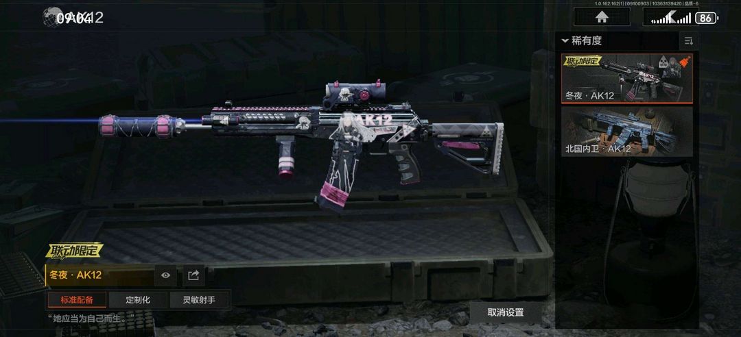 装备描述:苍白隐者伪装服,都护铁衣战术甲胄,万众狂欢套装; 热能武器补牢,三尺万仞战术剑,盘牙彻甲短刃,寒牙手刺,旧日主宰,贝利亚黄昏,涂鸦利刃,裁决手杖剑,急袭弯刀,工兵铲,来战开山刀; 玉鸾挂枝手套; 午夜梦魇FAL,林中人FAL,蓝色咆哮H416,秩序F2000,旗帜AEK,冬夜AK12,棱光裂变AKM,缟兵玄墨AKM,来战AKM,历战AKM,德尔塔小队M4A1,竞技M4A1,北国内卫MDR,逆火MDR,自喷网格H416,白垩游魂AK102,涂鸦AK102,火力倾泻AUG,火绒草AUG,棱光裂变AK74N,雪原凌锋AK74N,来战AK74N,山地伪装AK74N,骑士之剑AKS74U,涂绘猎人AR57,无声暗月AR57,棱光裂变ACE31,骑士之剑ACE31,湖冰倒影ACE31,白垩游魂ACE31,暴虐AEK,北国内卫AN94,阴影AN94,彻甲铜斑T951,缟兵玄墨T03,玄戈梨花T03,彻甲铜斑T03,林地数码T03,07式林地迷彩QBZ191; 长缨风掣Vector9,湖冰倒影MP5,掌中盾MP5,无声暗月MP5,玄戈梨花MPX,高塔之内P90,灰鼠幻歌P90,神锋Ve
