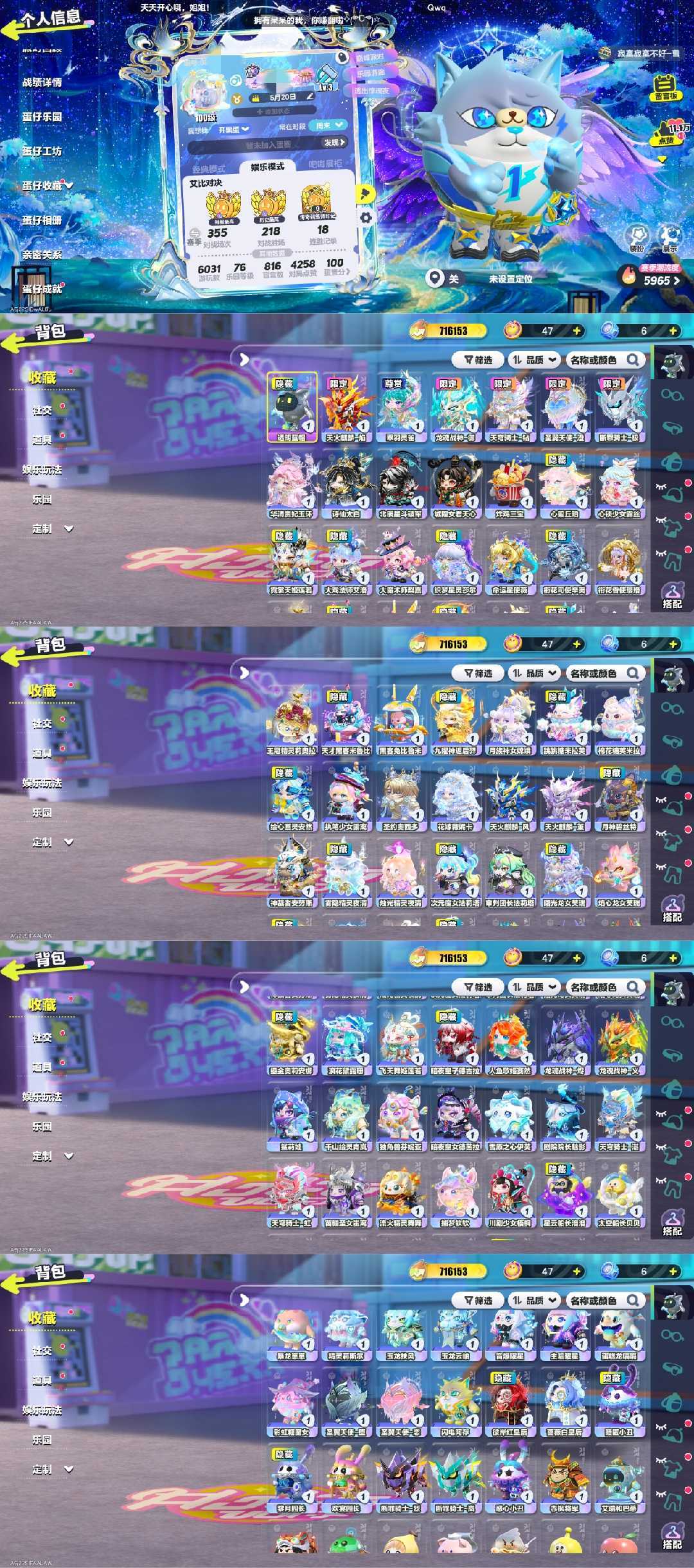装备描述:⭐账号有自动检测功能,瓶盖碎片换花,忘记二级密码等毁号操作会被检测并自动拉黑。也禁止改性别。 ❤️左下角进入店铺查看更多优质账号,经常会有活动特惠优质账号~ ⭐无理由投诉撤单拉黑!连续投诉撤单自动拉黑!不要故意投诉撤单,不要故意投诉撤单!! ❤️收藏店铺不会迷路哦~ ❤️所有商品会不定期限时特惠~ ❤️进入游戏若卡或者画面不流畅,游戏内进入设置-界面-右边第三栏帧率选择高,就不会卡了,只首次需要调以后都不会卡。 ❤️若出现登录问题,关闭软件重新上-订单-登录即可,还是不行进度条卡住,点击蛋仔派对更新完再进入软件-订单登录即可 ⭐星光小铺祝愿宝子们天天开心 提醒:此账号有藏宝阁交易凭证,若使用账号进行诈骗,违禁词,或使用第三方外挂导致账号被封,将依据损失通过ip,充值记录,手机号及支付宝或其他付款记录等信息,报警并亲自配合警察根据《刑法》第二百七十五条及二百六十六条,对违法者处三年以下有期徒刑,拘留及罚金。