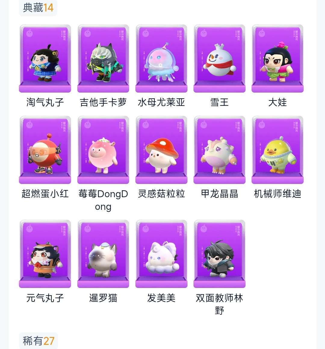 便宜租,有草莓东东,吉他手卡萝,水母,灵感菇,甲龙,机械鸭,罗猫,发美美,等其他皮肤,其他部分都有