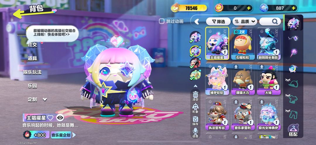 禁言/14W潮/主唱曜星/捕梦软软/剧院院长魅影/剧院首席露希/星河弹弹车/水母尤莱亚/极光女神典伊