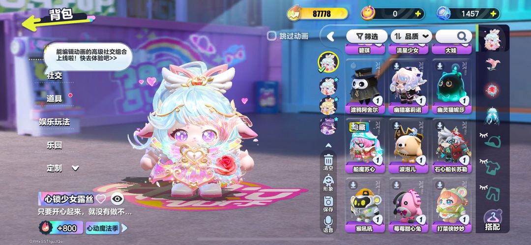 15W潮/心锁少女露丝/流火精灵舞舞/人鱼歌姬赛然/独角兽芬妮亚/小羊/船魔苏心/菠萝吹雪/蜜蜂Do