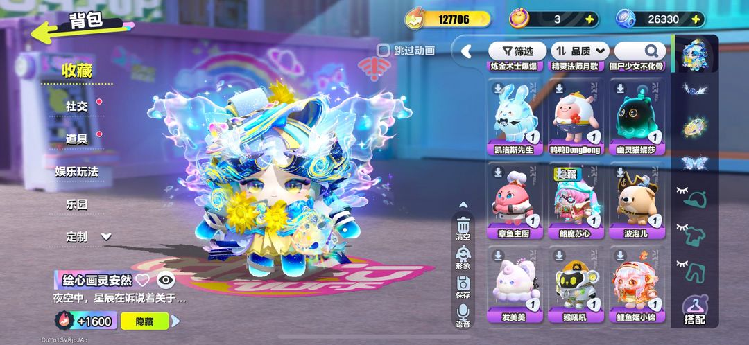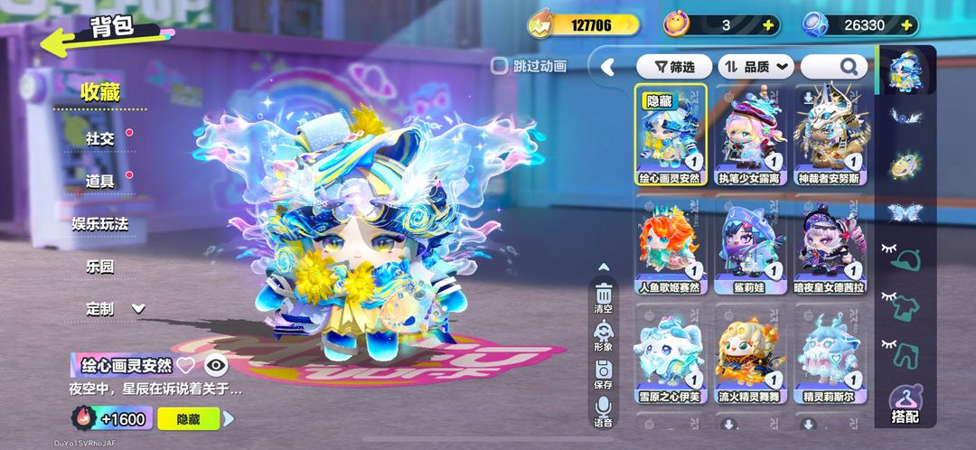 17至臻/绘心画灵安然/执笔少女露离/鲨莉娃/流火精灵舞舞/暗夜皇女德茜拉/人鱼歌姬赛然/小羊/精灵
