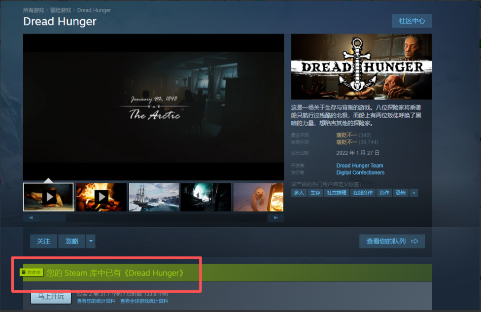 装备描述:《恐惧饥饿-Dread Hunger》✅终极版✅可联机✅好友功能已开通