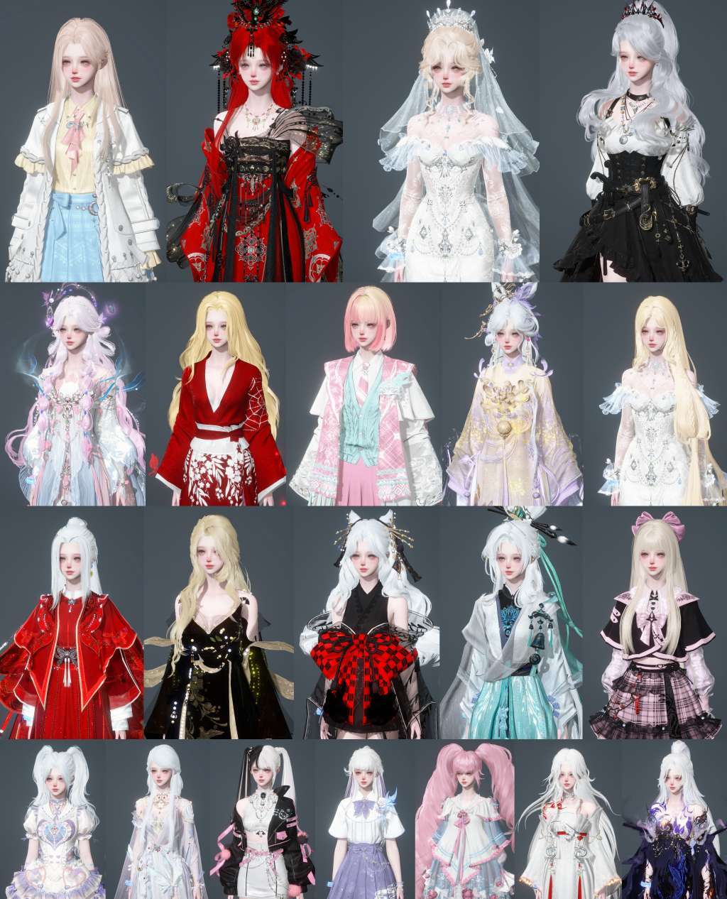 装备描述:霓华长乐无双喵语玉丝霁雪。40万衣品21w国色值40多套288,新288都有,每套288都有多个染色,审美在线。