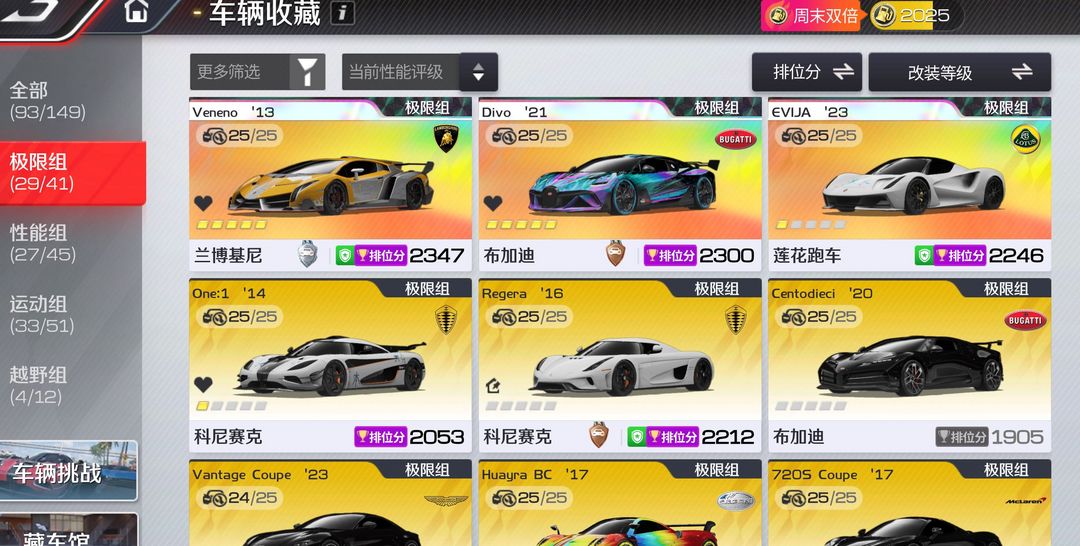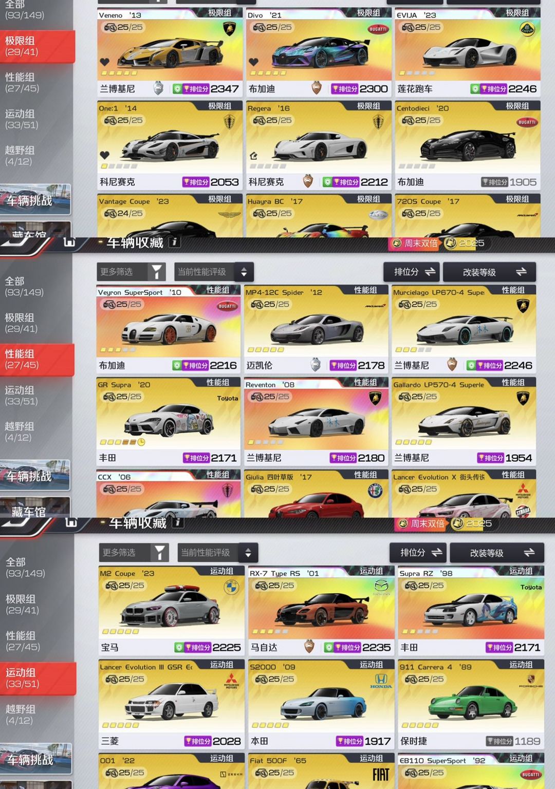 装备描述:不要乱动资源 不要升级车辆改装 不要动钻石,后续还要用来升级其他车辆,谢谢!!! 极限组:T0金车基本齐全满改 性能组:T0基本满改 运动组:T0金