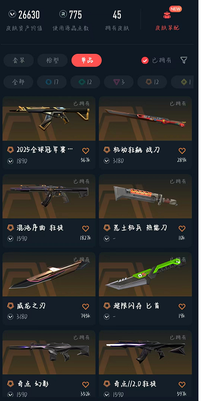 可排位2.6万库存〓奇点2.0全套〓混沌序曲盖亚的复仇狂徒威龙之刃〓2025冠军赛侦查力量781幻影