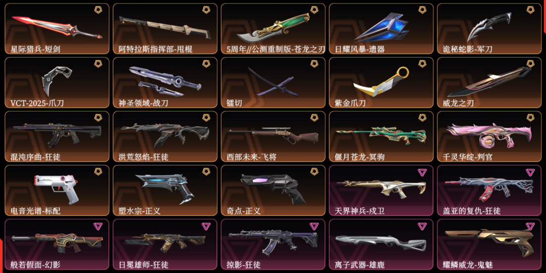 ⭐精品刀25爪刀紫金爪苍龙之刃威龙镭切⭐混沌流脓盖亚掠夺日冕⭐奇点塑水正义电音标配⭐莲花喷苍龙狙