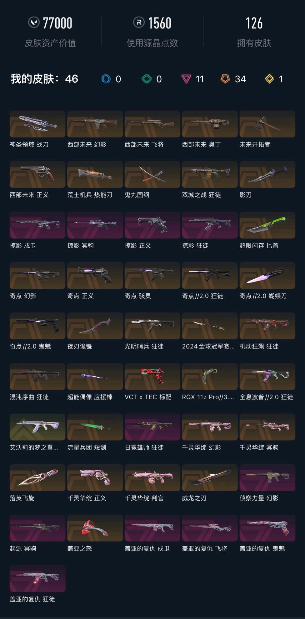 武器皮肤数量:126