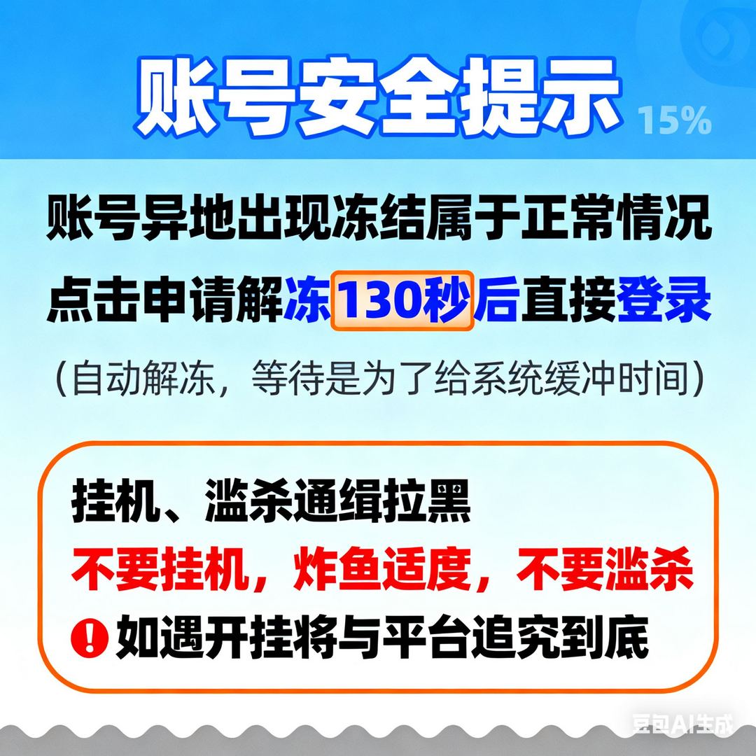 装备描述:21冠军ak,塑水套,光明套,盖亚套,起源套 账号冻结点击解冻等待三分钟后可登录❤️炸鱼请适度过分炸鱼通缉拉黑 账号异地出现冻结属于正常情况 点击申请解冻130秒后直接登录(自动解冻,等待是为了缓冲时间) 挂机、滥杀通缉拉黑 不要挂机,炸鱼适度,不要滥杀 如遇开挂将与平台追纠到底