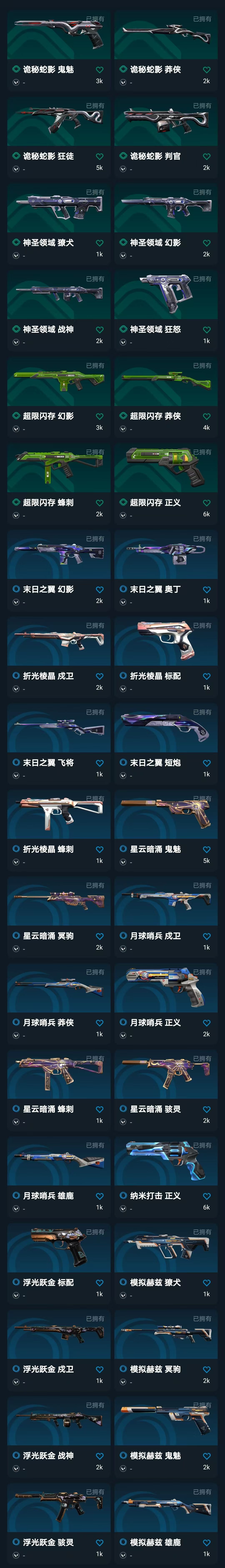 可排✨奇点2套 神中神罚套✨盖亚AK混沌AK✨侦察紫金幻影✨鱼缸戍卫✨西部未来正义飞将✨起源大狙✨