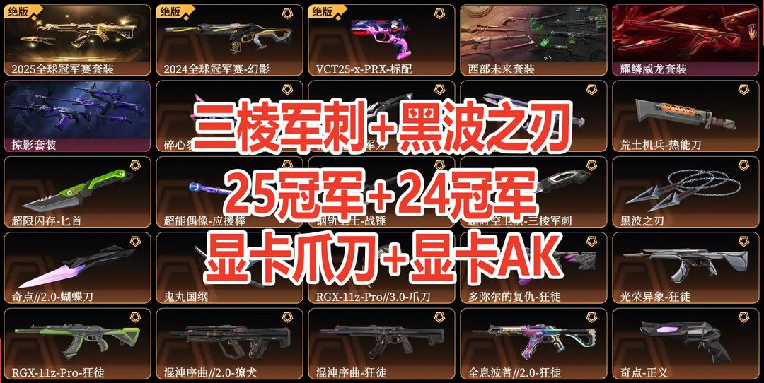 可排位✅顶级10W库存✅超时空三棱刀⭐25冠军套⭐显卡AK显卡爪刀⭐西部未来套⭐耀鳞威龙套⭐掠影套⭐
