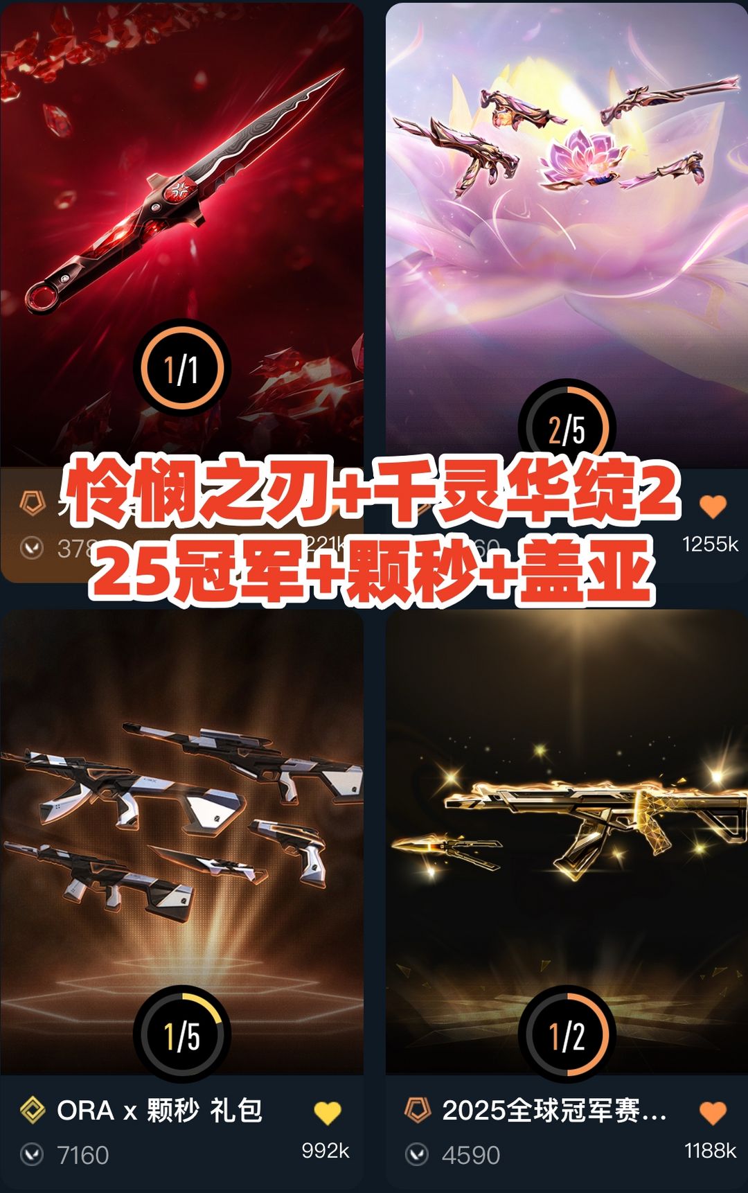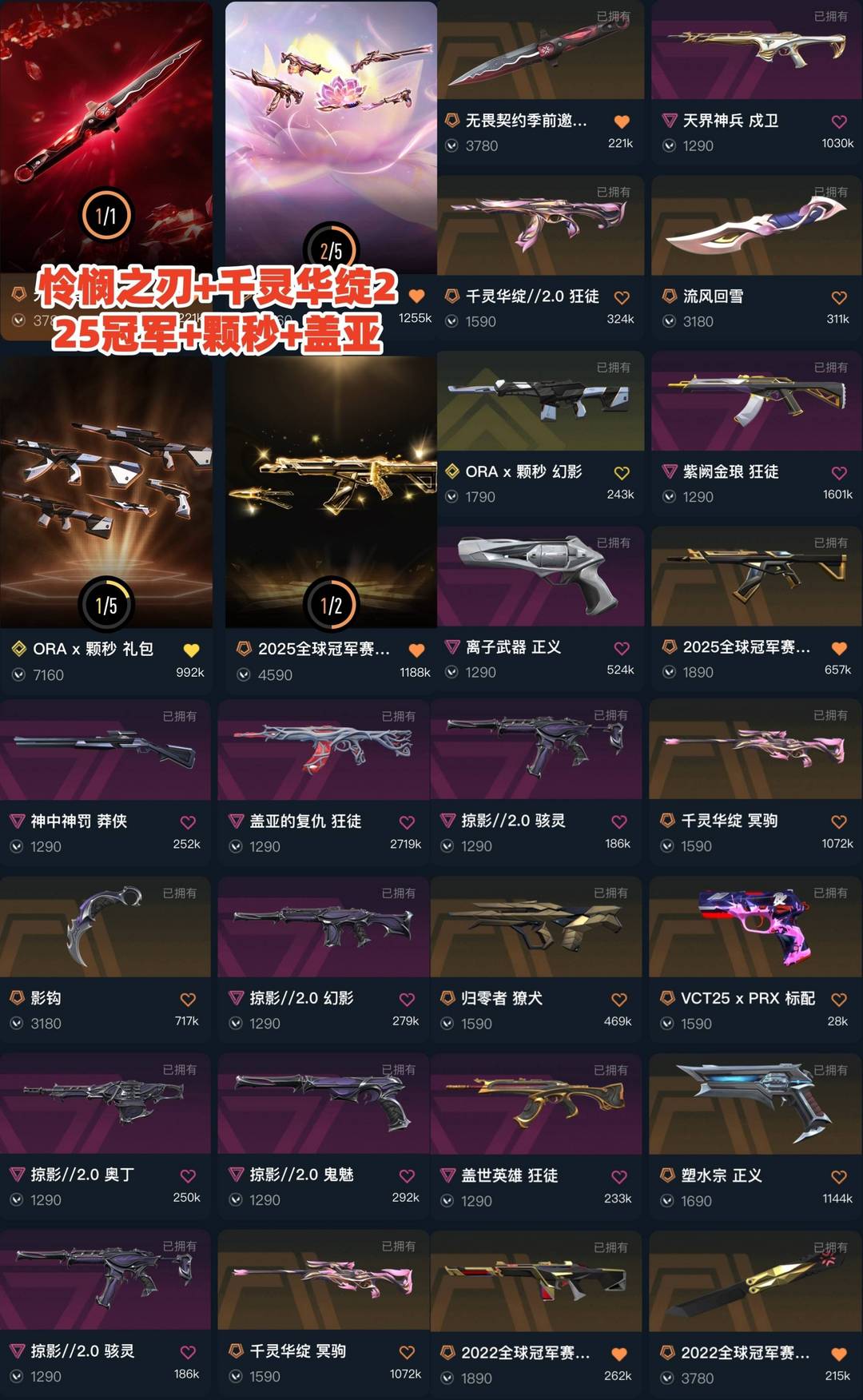 禁排✅4万⭐怜悯之刃千灵华绽2紫金25冠军盖亚猴子⭐蝴蝶刀影钩流风回雪⭐颗秒22冠军掠影2.0⭐离子
