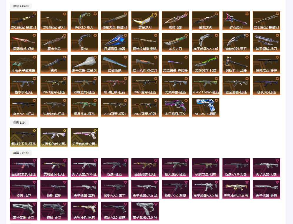 15W库存⭐21/22/24/25冠军套⭐猫猫紫金侦察掠夺盖亚显卡混沌流脓超时空摩托⭐主流武器全毕业