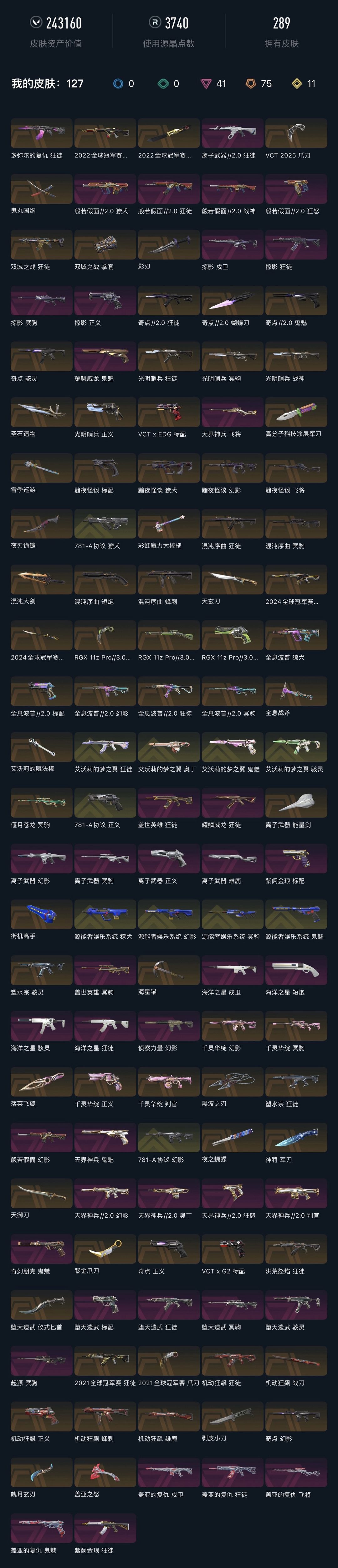 武器皮肤数量:289