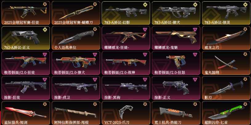 禁排位大库存✨25冠军✨西部✨恶鬼✨掠影✨混沌✨弃王✨威龙✨781✨起源✨vct✨紫金✨各种散件炫彩