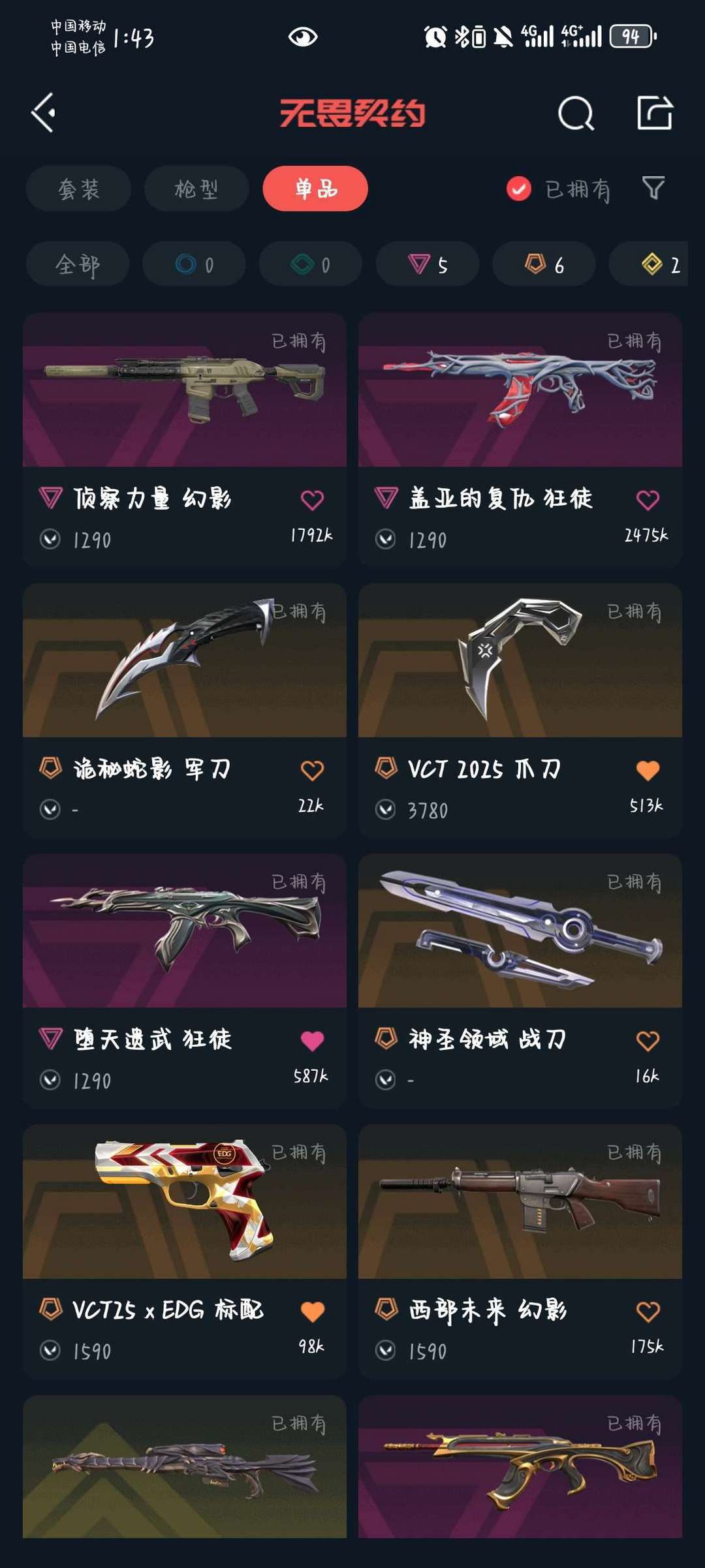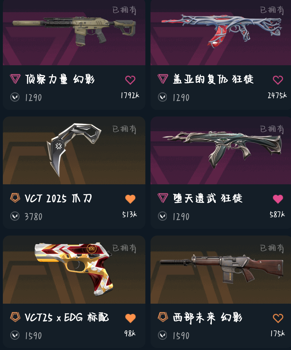 装备描述:可以当小号来玩,可以带妹子用 有手感第一的盖亚的复仇ak 满级 满炫彩 有手感恢复器之称的紫金ak 满级 满炫彩 有号称带妹神器,以及Q弹的梦之翼(猫猫)ak 满级 满炫彩 有击杀反馈顶尖的猴子ak 满级 满炫彩 有全幻影人气最高 手感顶尖的侦查力量幻影 满级 满炫彩 有充满西部科技风的西部未来幻影 满级 满炫彩 有职业选手都在用的上古龙炎冥狙 满级 满炫彩 还有冠军战队EDG的标配 满级 以及炫酷的2025vct爪刀 满级 满炫彩 禁止利用账号进行开挂、使用辅助违规软件诈骗等违规操作。 注意:请各位朋友考虑好时间问题,时间不够了就别打排位了 !!!! 注意:账号已备案,开挂必究!!!!
