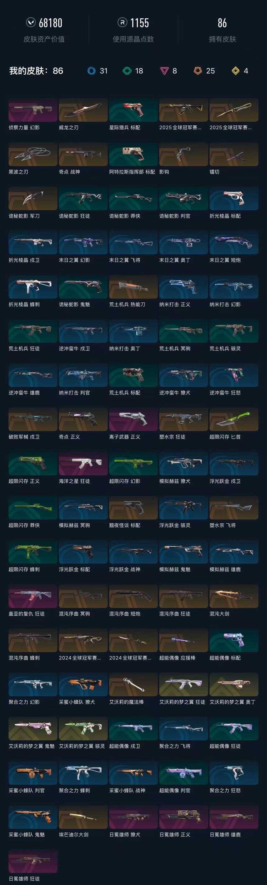 武器皮肤数量:87