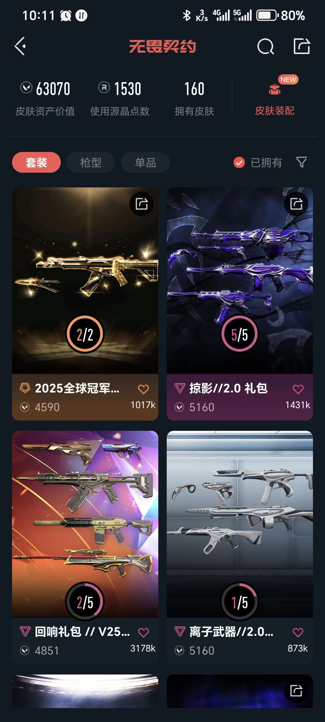 库存价值5000 25冠军套离子套掠夺套创纪元套刀皮数量10 枪皮数量123