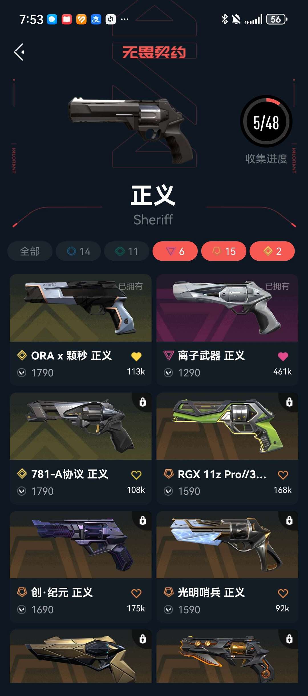 颗秒全套15个橙皮,9紫皮四金皮,都是热门稀有皮肤