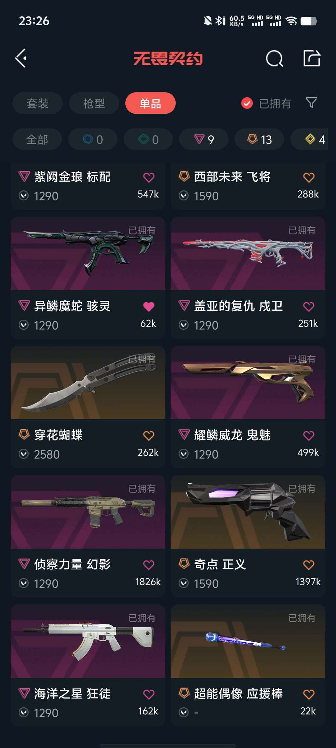 无畏契约精品账号,全英雄,皮肤如下图,可排位,适合各位顶端大哥炸鱼
