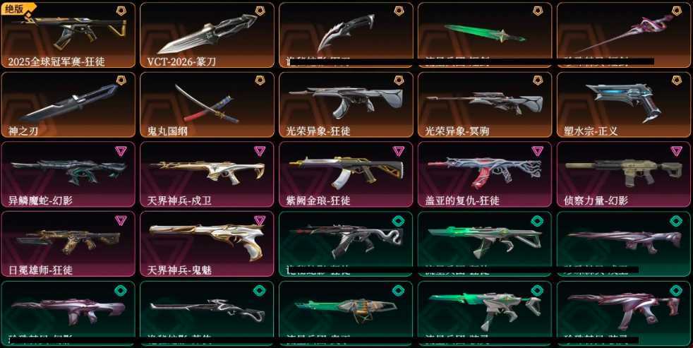 可排位大库存✨vct26篆刀✨25冠军✨神之刃✨天界✨盖亚✨紫金✨侦查✨雄狮✨塑水正义✨各种散件炫彩