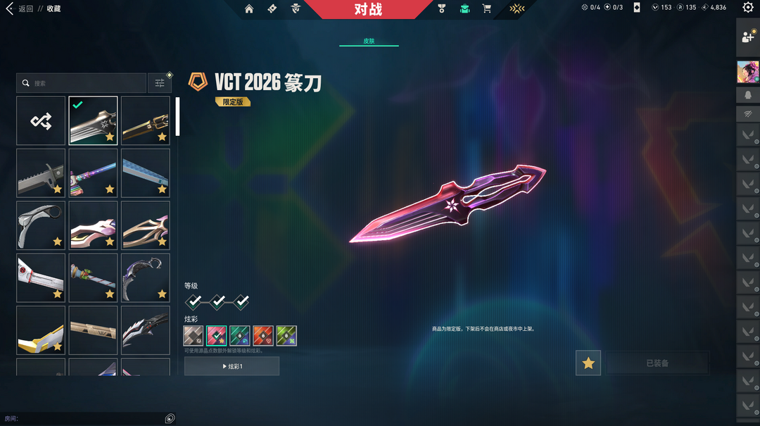 装备描述:离子2.0套 电光套 25冠军套 VCT26刀 莲花2.0套 掠影2.0套