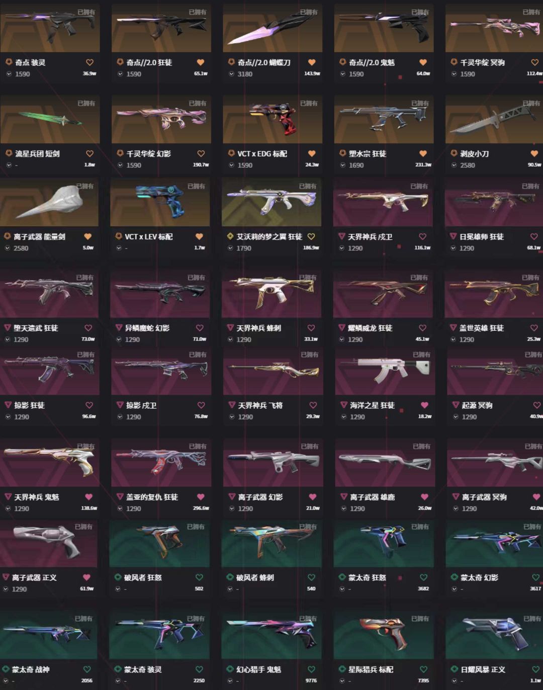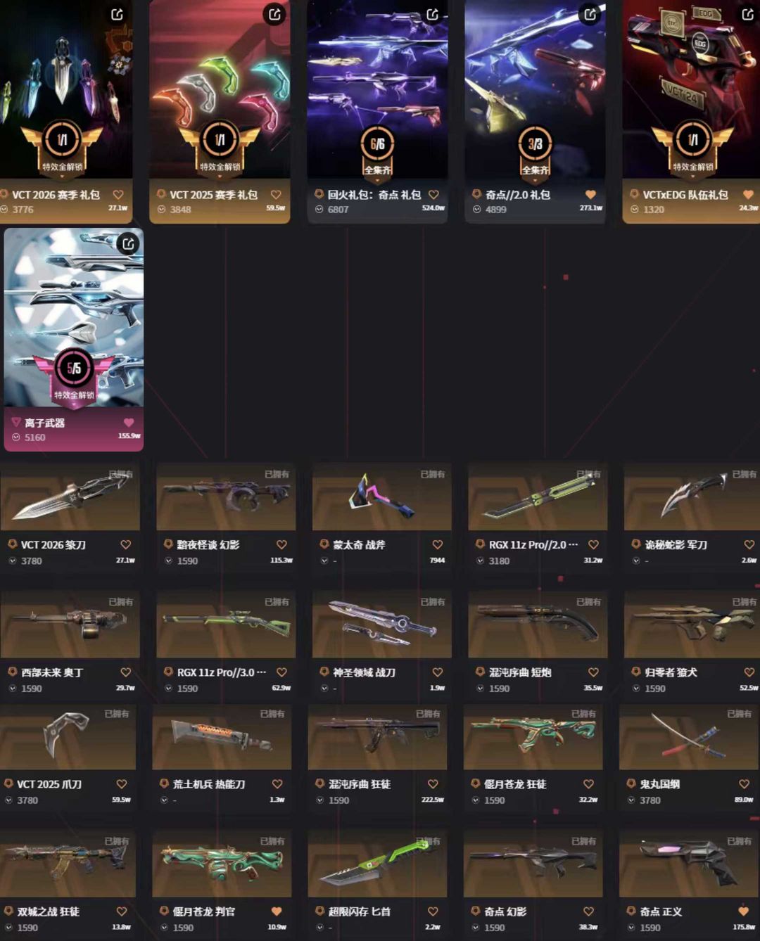vct篆刀vct爪刀剥皮刀✨离子套全奇点套✨弃王猫猫悟空混沌盖亚青龙ak✨蛇年黯夜莲花m4全武器p