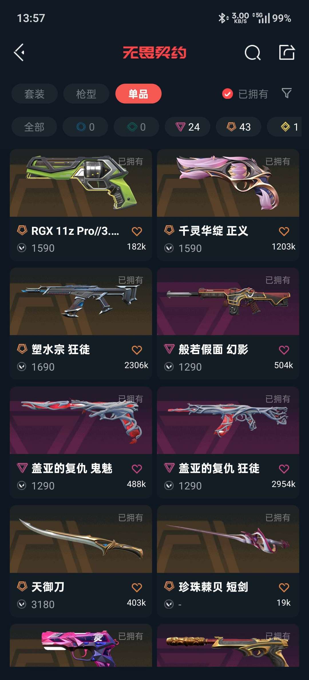 武器皮肤数量:181