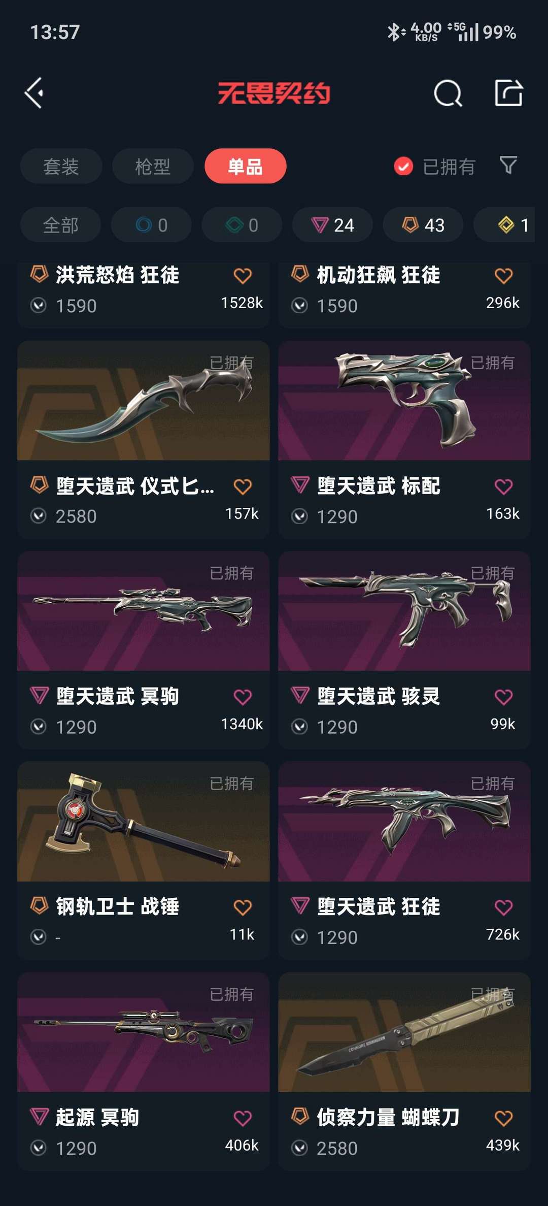 传奇数量:43