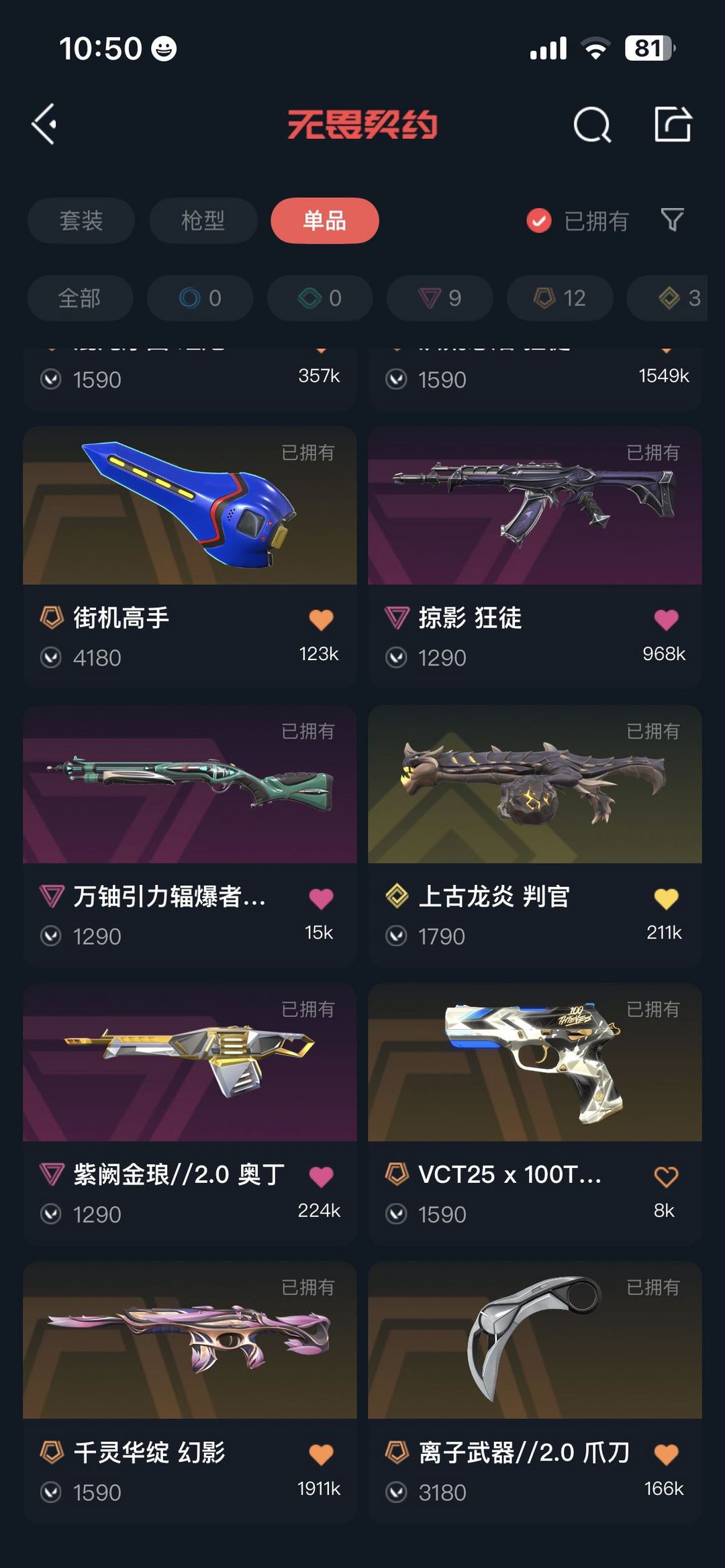 武器皮肤数量:105